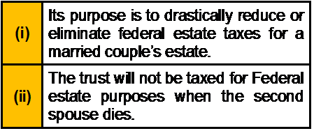 You are a Trust and Estate Planner. Mr. Keith is your client. He is 45 years old. He asks you that in case he wants to leave assets for the life benefit of his spouse, but ultimately have the funds pass to his children by a prior marriage he should create ______________________. He further asks you to explain disadvantages of such arrangement. You tell him that the disadvantages of the arrangement are ____________ of the given options.