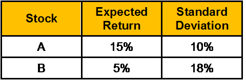 The expected return and standard deviations of stock A & B are: