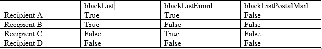 An email and direct mail is sent with the below recipient as the target. Their blacklist is shown below.