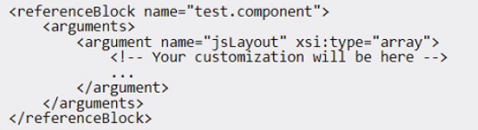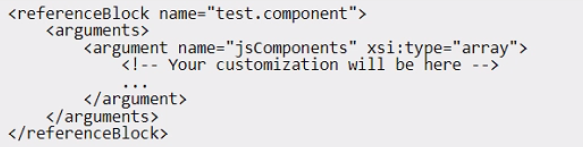 An Adobe Commerce developer wants to initialize a JS component via Layout XML in custom reference block test. component. Which Layout XML instruction would be used to initialize this JS component?