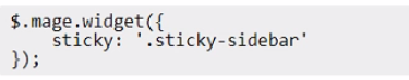 An Adobe Commerce developer is implementing a sticky sidebar using a jQuery widget. How would the developer initialize the block in a JavaScript file?