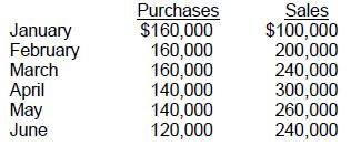 Forty percent of purchases are paid for in cash at the time of purchase, and 30 percent is paid for in each of the next two months. Purchases for the previous November and December were $150,000 per month.