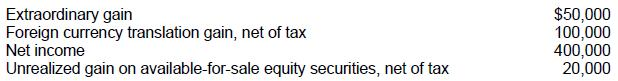 Choice 'c' is correct. Comprehensive Income includes all items included in 'Net Income' plus 'Other Comprehensive Income' items. Since the $50,000 extraordinary gain is already included in Net Income, Comprehensive Income is: