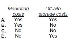 Choices 'a', 'b', and 'c' are incorrect. Marketing costs are deductible, but off-site storage must be capitalized.