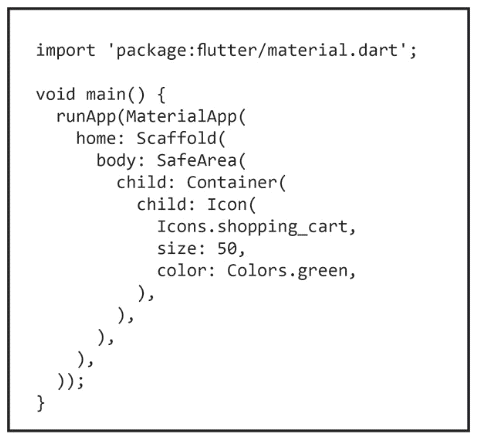 Which image is the run output of the following Dart code?