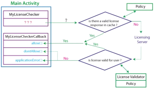 Using the LVL (License Verification Library) in your Android application code requires using one main class: LicenseChecker, and there is no need to using the LicenseCheckerCallback class.