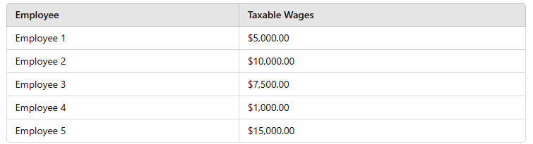 Using the table of taxable wages below, calculate the employer's FICA tax liability on the first check of the year: