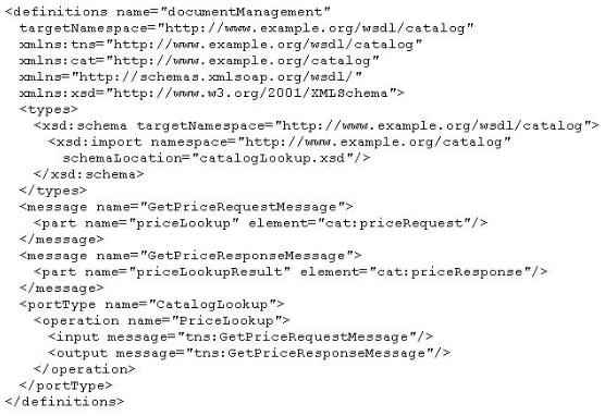 Your IT department has decided to take a "WSDL-first" approach to building services. They took this quite literally, and developed a WSDL definition before there was a corresponding XML schema to define the message structures. The following WSDL definition was created: