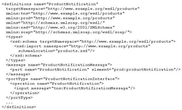 You have developed the following WSDL definition for the Product Notification service that needs to be able to notify customers every time a new product is added to a product catalog: