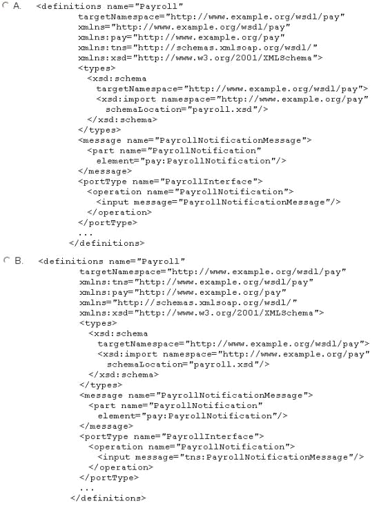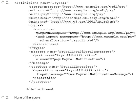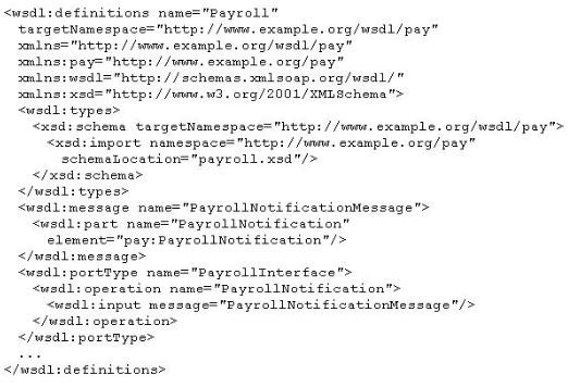 You have written the following WSDL definition to describe the Payroll service, which provides a "PayrollNotification" operation that sends out employee payroll information: