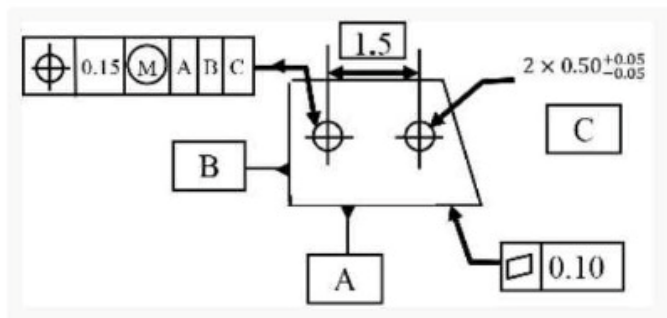 Maximum Material Condition (MMC): The condition of a part feature which contains the greatest amount of material within the tolerance limits. For example, for a hole, it is the smallest diameter, and for a shaft, it is the largest diameter.