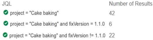 Tom has asked you why the numbers returned by his searches are not right. He shows you three JQL queries: