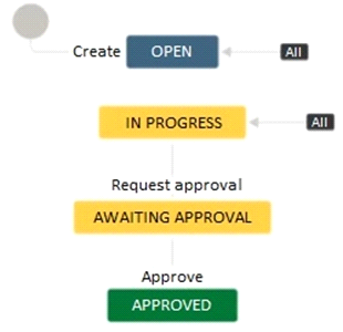 * It should be possible to transition issues into the Awaiting Approval status from any other status apart from the Approved status.