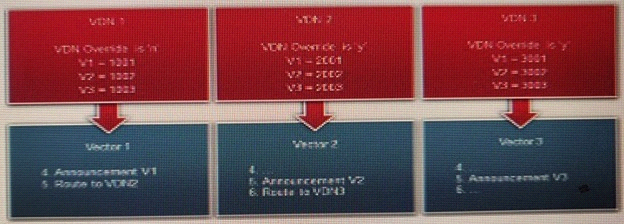 The diagram shows three VQNs, with VDN override and VDN variables. The call first arrives into VDN 1 and ends up on VDN 3.