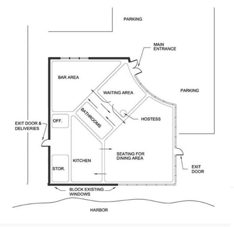 The graphic shown below represents a blocking diagram of a popular tourist restaurant relocating to a new location along the harbor.