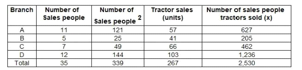 Company GHI wishes to develop a linear model for forecasting tractor sales based on the number of sales people it employs. In the model, tractor sales will be the dependent variable and the number of sales people the independent variable