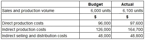 The following budget and actual data are available for last period.