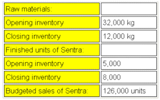 Each unit of Sentra requires 4kg of raw materials.