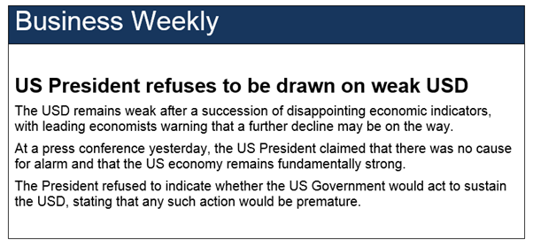 I also wish to know why you have chosen to do nothing to hedge against this risk. If you look at the attached article you will see that the USD is an issue in the business news.
