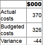 A cost centre manager's performance is monitored based on a comparison of actual and budgeted cost. A summary performance report for the latest period is shown below.