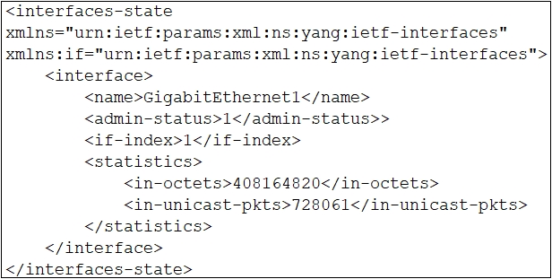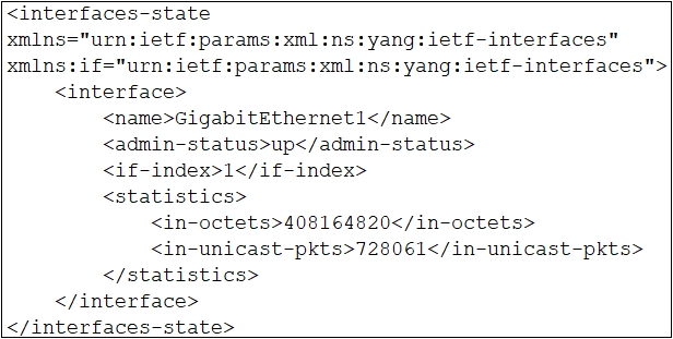<interfaces-state xmlns='urn:ietf:params:xml:ns:yang:ietf-interfaces' xmlns:if='urn:ietf:params:xml:ns:yang:ietf-interfaces'>
