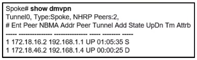 An engineer has configured DMVPN on a spoke router. What is the WAN IP address of another spoke router within the DMVPN network?