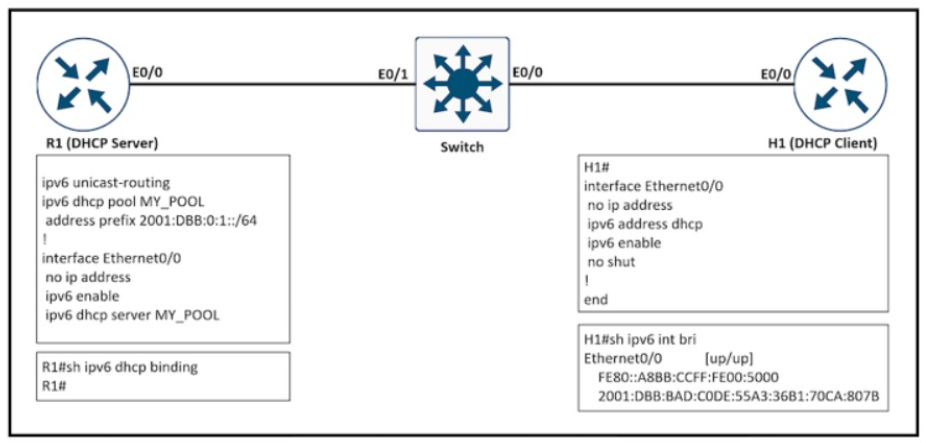 Refer to the exhibit. The client server but the show command does not show the IPv6 DHCP bindings on the server. Which action resolves the issue?
