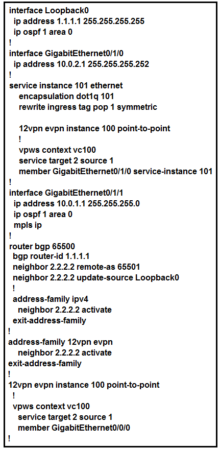 An engineer is trying to configure an EVPN VWPS. What is the issue with this configuration?