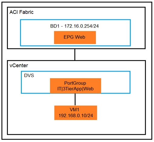An organization migrates its virtualized servers from a legacy environment to Cisco ACI. VM1 is incorrectly attached to PortGroup IT|3TierApp|Web. Which action limits IP address learning in BD1?