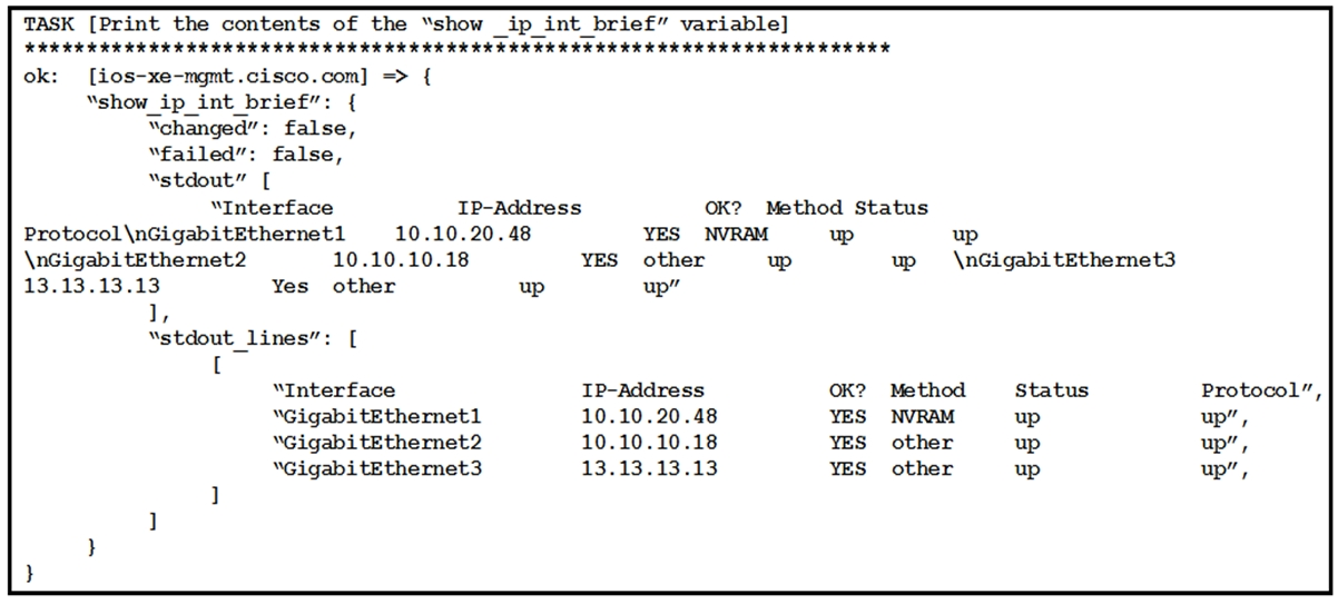 show_ip_int_brief variable that was registered in a different task in the playbook.