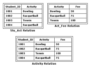 Consider the Stu_Act and Act_Fee tables shown in the exhibit. Which relational algebraic