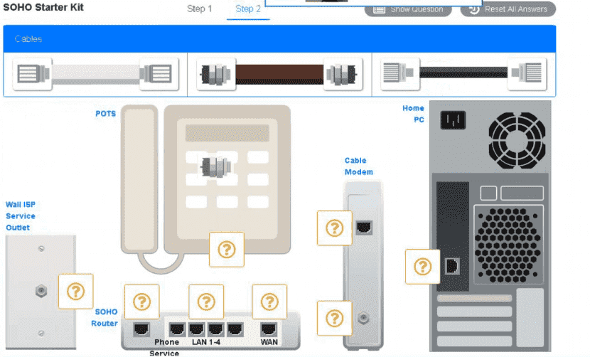 A small ISP has hired a new technician Joe, the new technician, is being trained to configure customers* home networks The trailing instructor gives me technician a starter kit with cables, cable ends, and other network equipment and asks mm to build a working network.