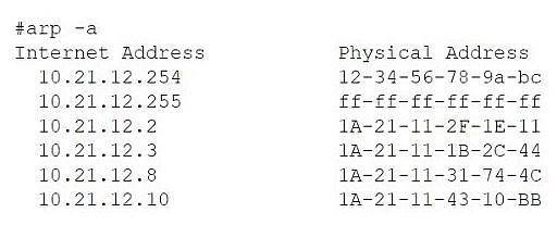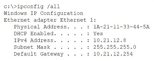 A network administrator is troubleshooting a user's workstation that is unable to connect to the company network. The results of commands the administrator runs on the workstation are shown below:
