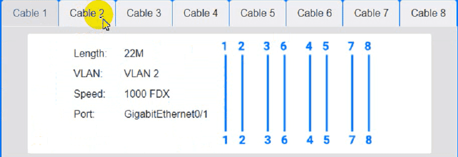Troubleshoot all the network components and review the cable test results by Clicking on each device and cable.