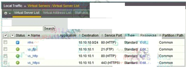 A user attempts to connect to 10.10.10.1.80 using FTP over SSL with an FTPS client. Which virtual server will match and attempt to process the request?