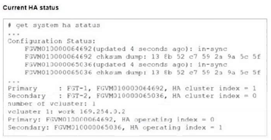 FGT-1 and FGT-2 are updated with HA configuration commands shown in the exhibit.