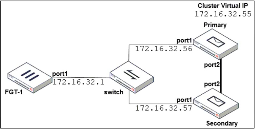 Refer to the exhibit which shows a topology diagram of a FortiMail cluster deployment.