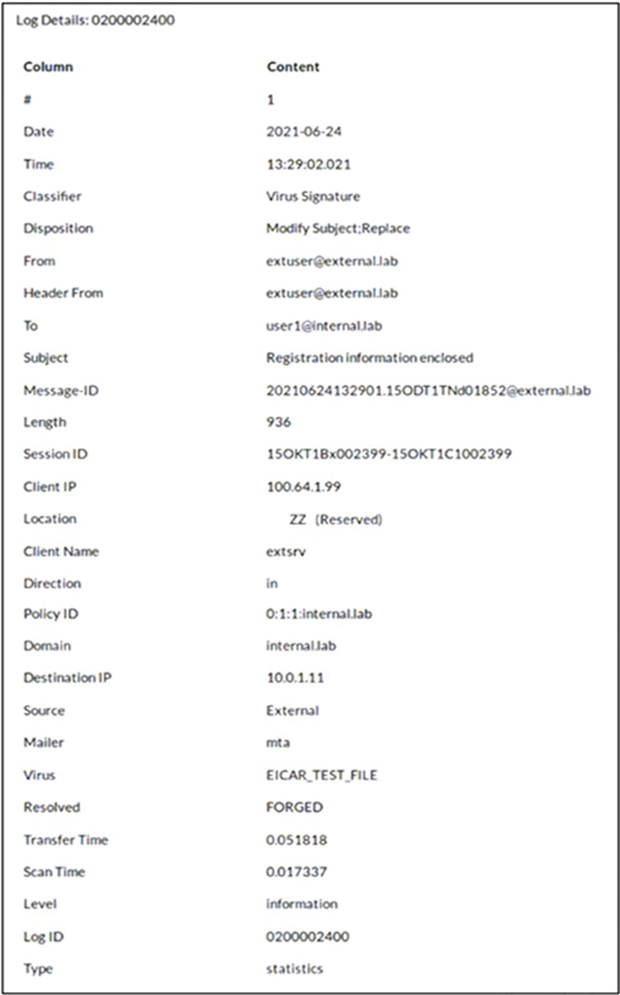 Which two actions did FortiMail take on this email message? (Choose two.)