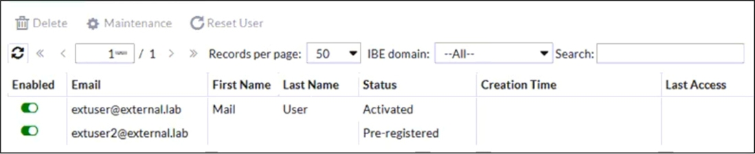 Refer to the exhibit which displays a list of IBE users on a FortiMail device.