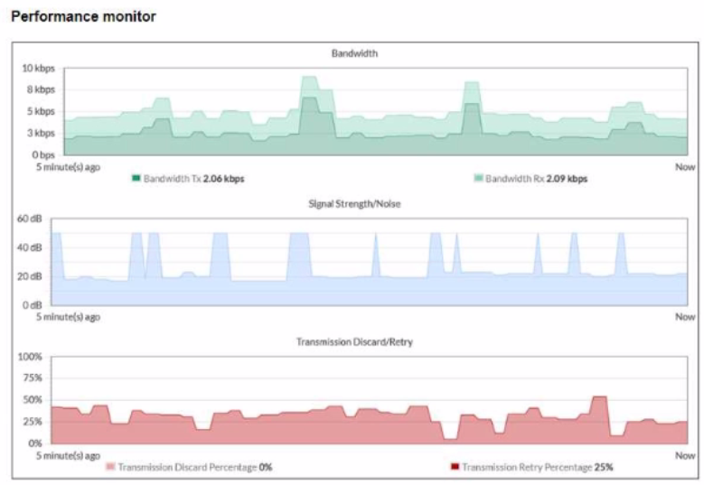 Refer to the exhibit of a wireless client performance monitor Which performance metric is abnormal for this wireless client?