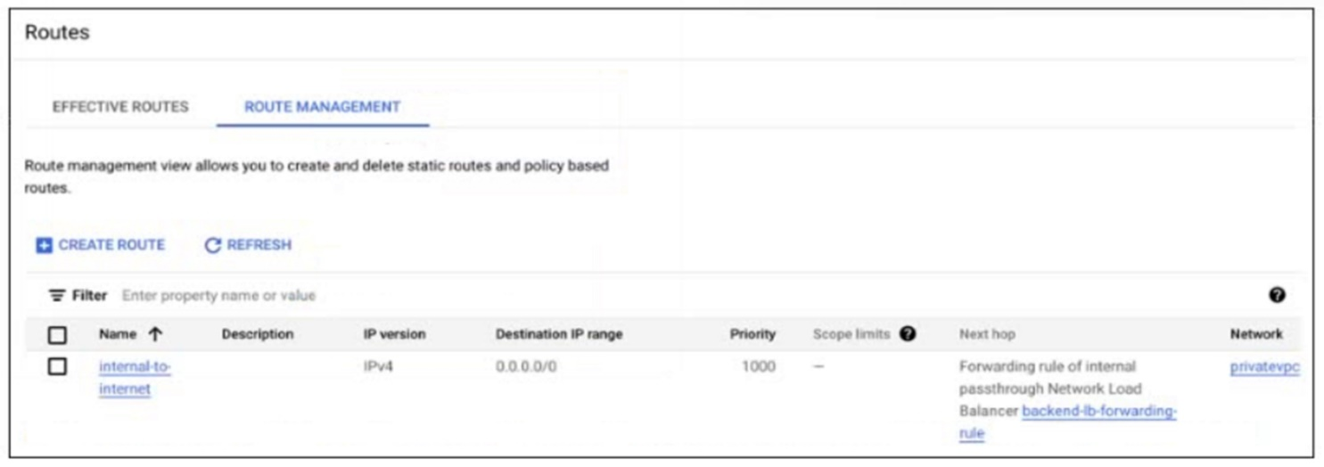 The route's next hop is a forwarding rule for a backend service, which indicates a group-based passthrough load balancer.