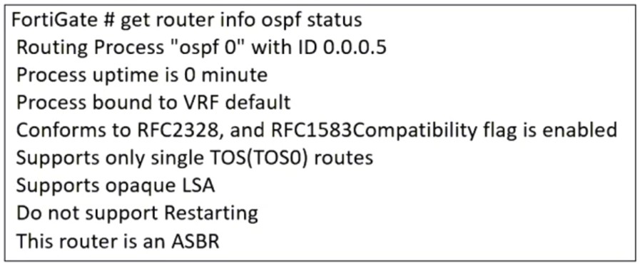 An administrator is checking the OSPF status of a FortiGate device and receives the output shown in the exhibit.