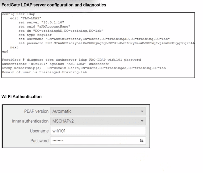 diagnose test authserver ldap FAC-LDAP wifi101 password