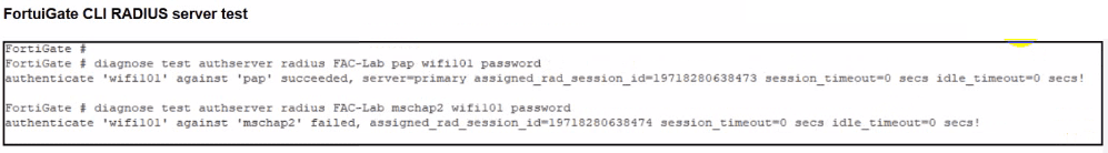 While testing authentication on FortiGate using the command diagnose test authserver radius, it was observed that authentication succeeds with PAP but fails with MSCHAPv2.
