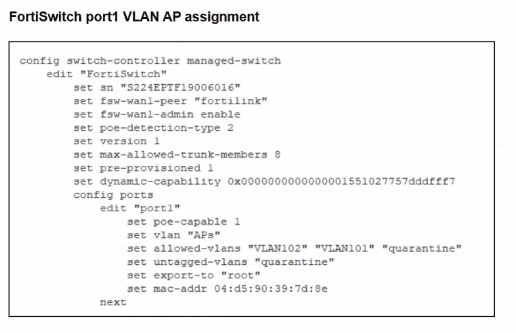 This VLAN is assigned toport1on the managed FortiSwitch for FortiAPs.