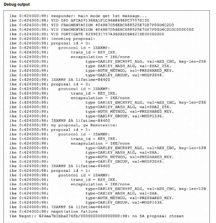 Refer to the exhibit, which contains partial output from an IKE real-time debug.