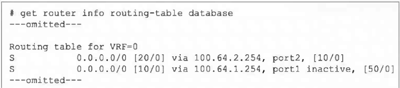 Refer to the exhibit, which shows a partial output from the get router info routing-table database command.