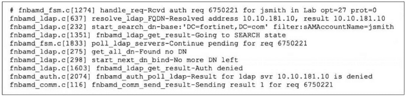Refer to the exhibit, which shows a partial output of the real-time LDAP debug.