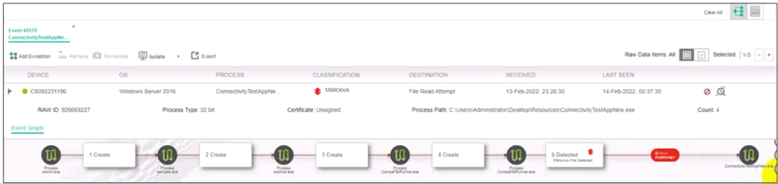 The FortiEDR axe classified an event as inconclusive, out a few seconds later FCS revised the classification to malicious. What playbook actions ate applied to the event?