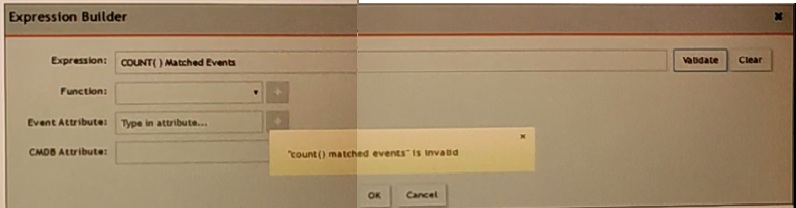 An administrator is trying to identify an issue using an expression bated on the Expression Builder settings shown in the exhibit however, the error message shown in the exhibit indicates that the expression is invalid.